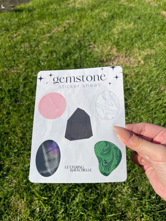 Gemstone sticker sheet - rose quartz, labradorite, malachite, howlite, smoky quartz sticker